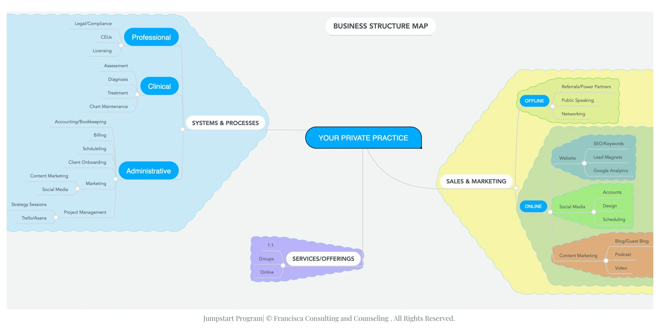 Marketing System: This system generates a consistent flow of new leads and clients into your private practice. It includes social media, content creation, referral outreach, advertising, and your overall visibility strategy.